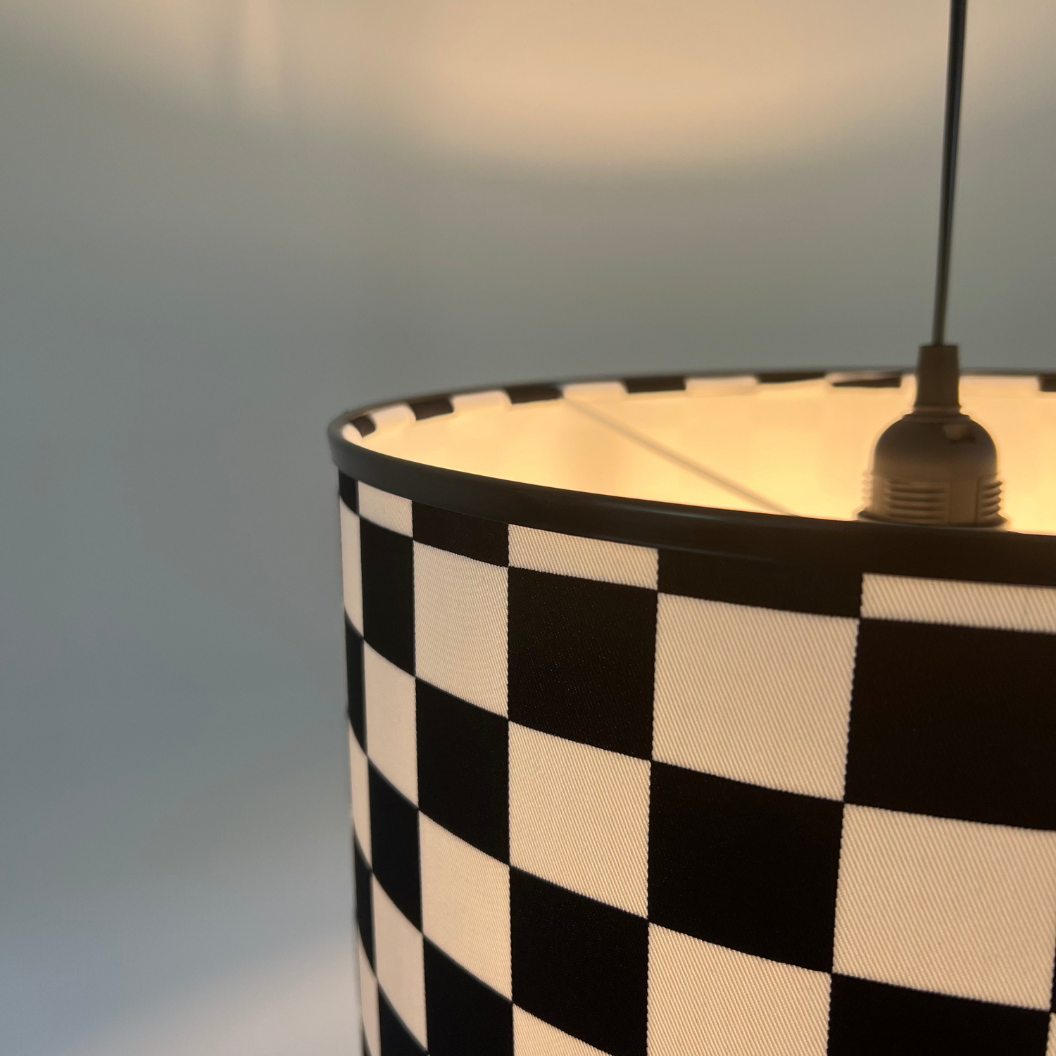 We worked closely with Jodie to customise our Checkerboard lampshades with custom acrylic trims.
