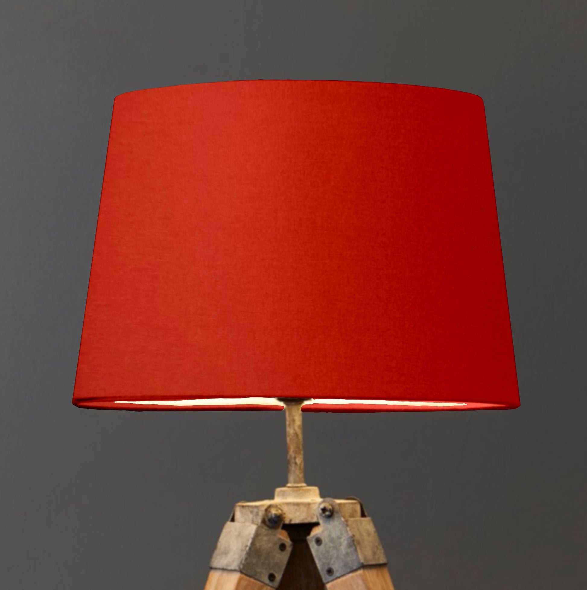 French drum empire lampshade in burnt orange, terracotta cotton paired with a white lining