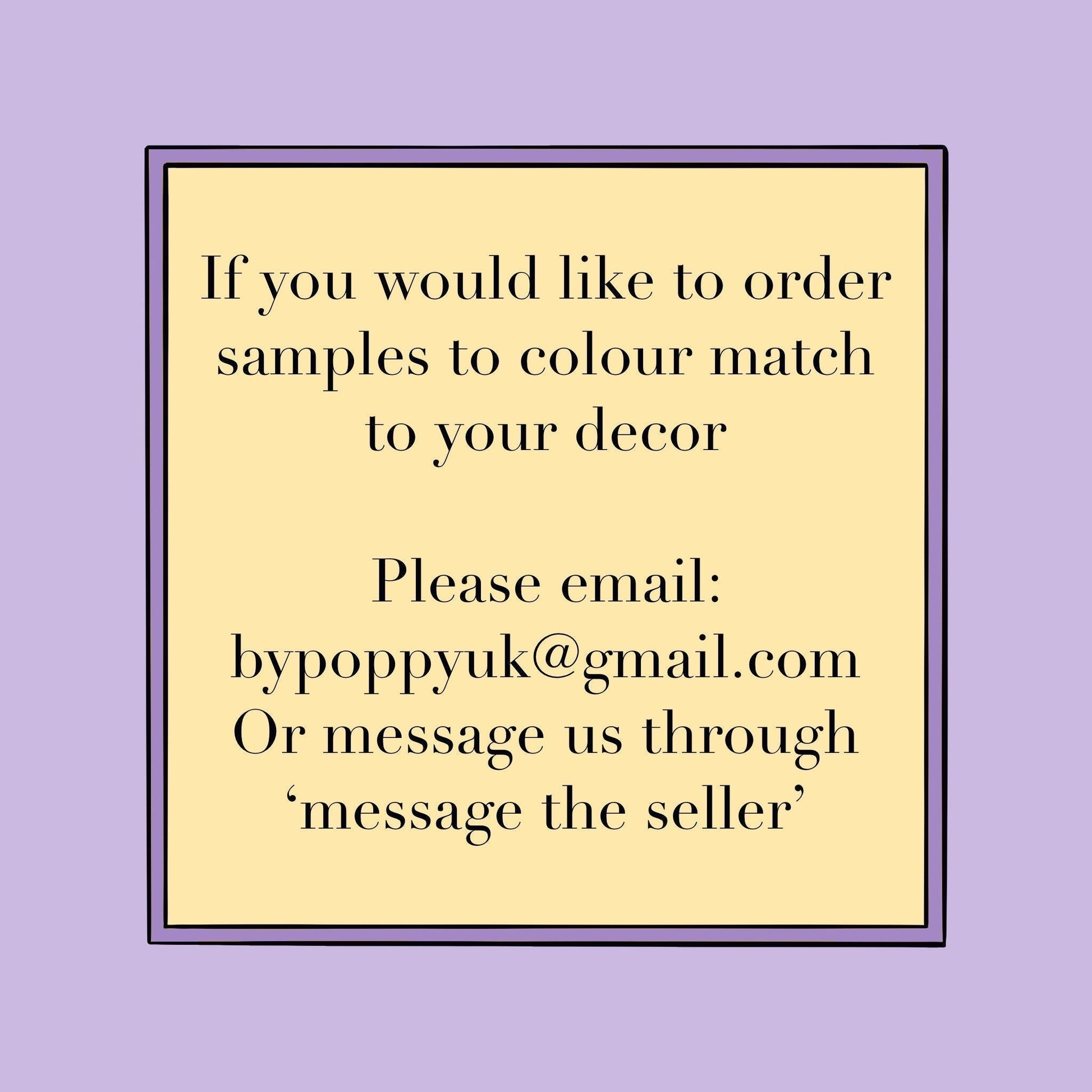 Samples for fringe, braid and fabric can be ordered via email at bypoppyuk@gmail.com